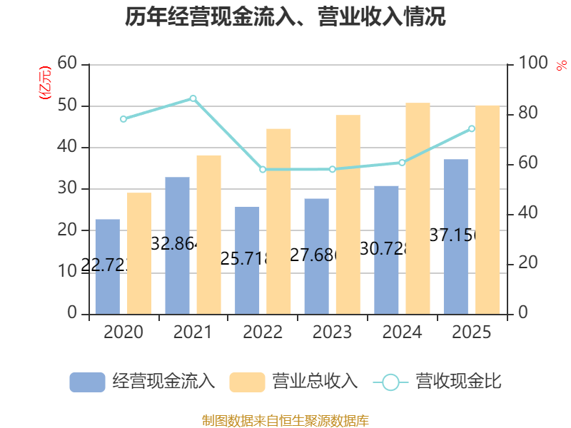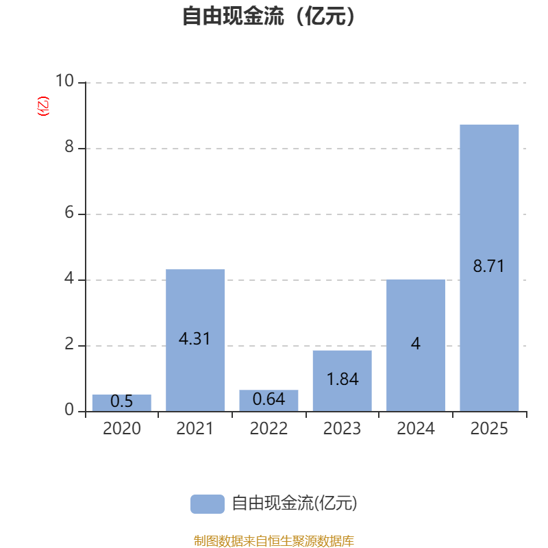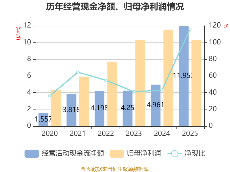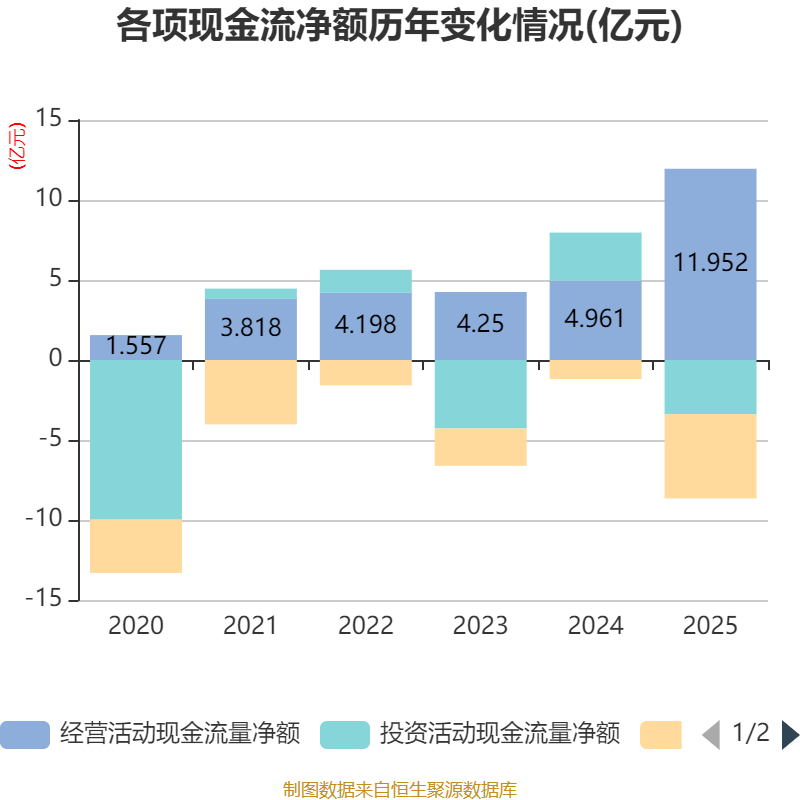 截至2025年,公司经营活动现金流净额为11.95亿元,同比增长140.92%;筹资活动现金流净额-5.26亿元,同比减少4.08亿元;投资活动现金流净额-3.38亿元,上年同期为3亿元。