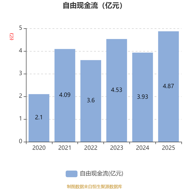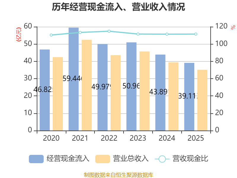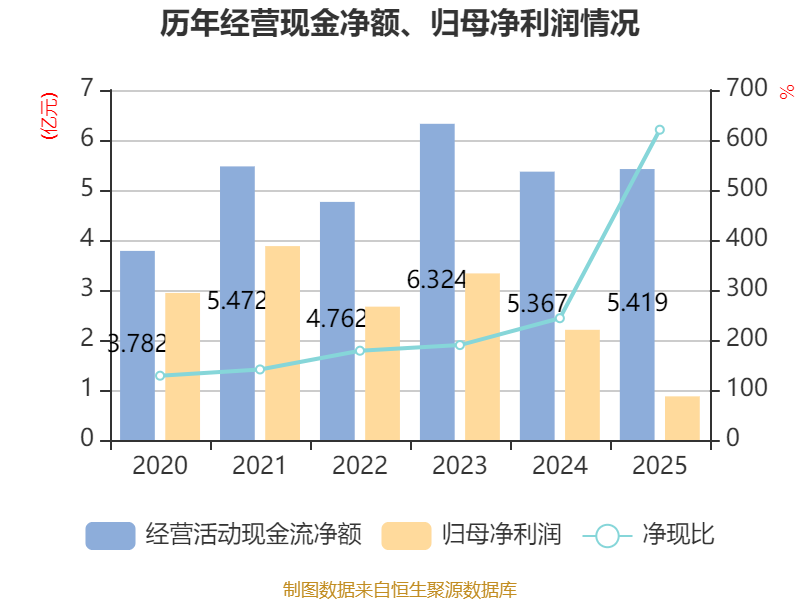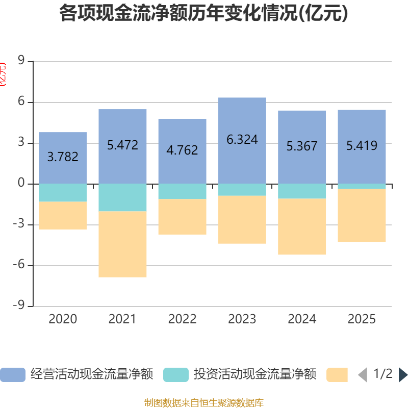 截至2025年,公司经营活动现金流净额为5.42亿元,同比增长0.96%;筹资活动现金流净额-3.9亿元,同比增加2097.5万元;投资活动现金流净额-3979.81万元,上年同期为-1.11亿元。