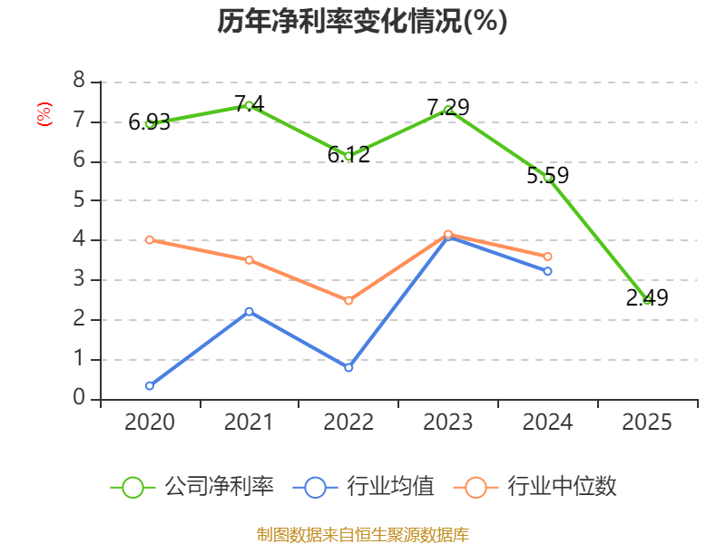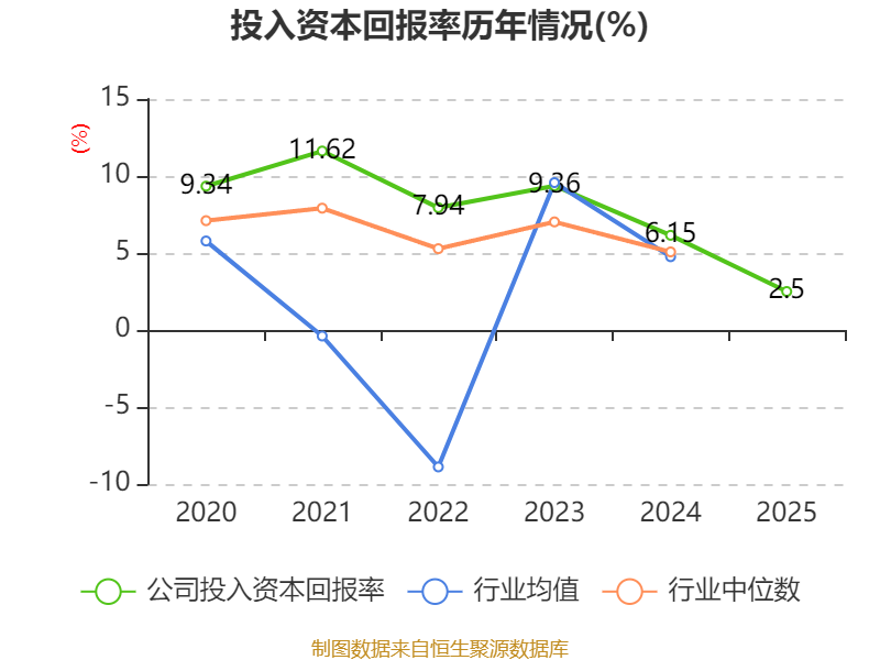 数据显示,2025年公司加权平均净资产收益率为2.6%,较上年同期下降3.95个百分点。公司2025年投入资本回报率为2.5%,较上年同期下降3.65个百分点。