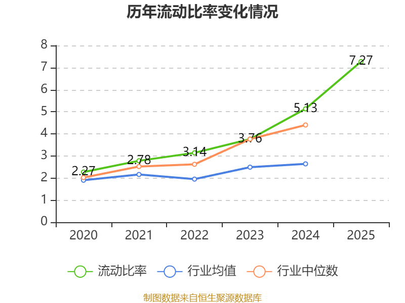 2025年,公司流动比率为7.27,速动比率为2.69。