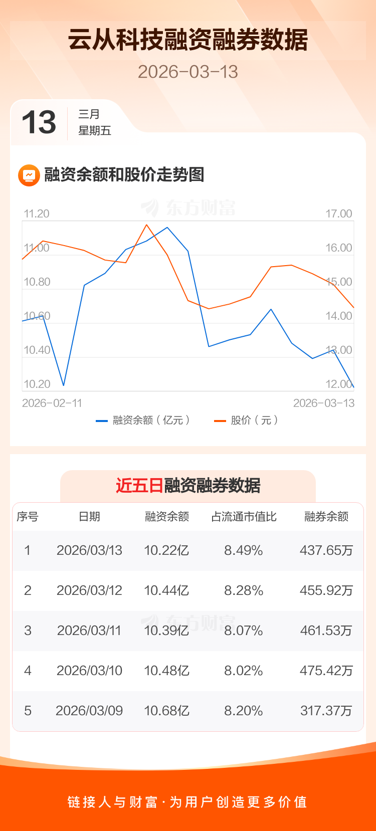 交易所最新数据显示,云从科技于2026年3月13日获融资买入3822.49万元,融资偿还6019.72万元,当日融资净偿还2197.23万元。目前,该股融资余额10.22亿,占流通市值比例为8.49%。