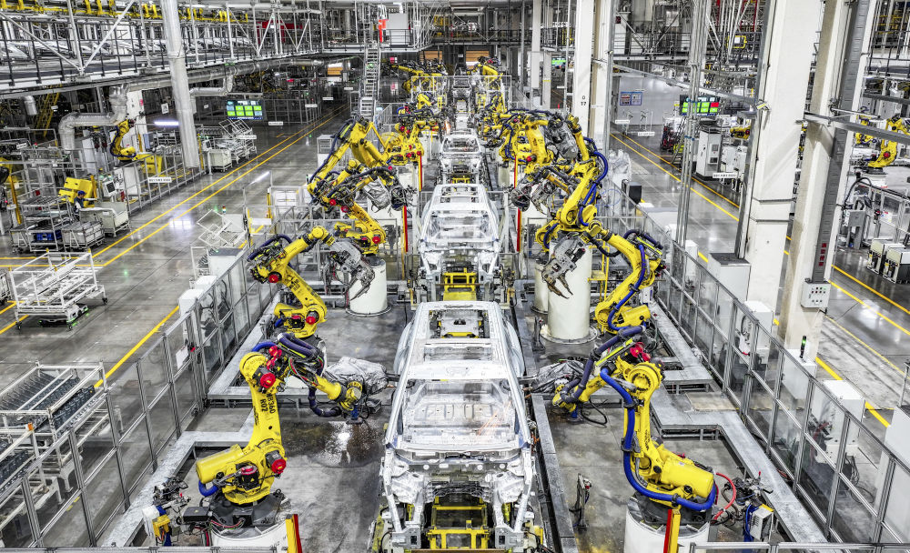 这是2025年9月19日在位于重庆市两江新区的赛力斯汽车超级工厂拍摄的自动化生产作业现场。新华社记者王全超摄