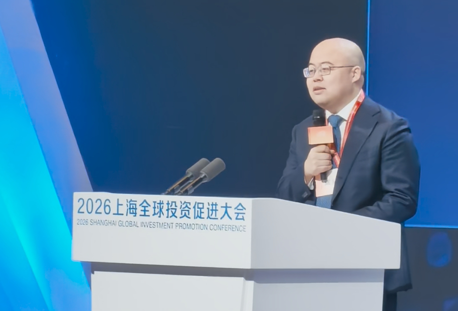 闫俊杰在2026上海全球投资促进大会上发言。 澎湃新闻记者秦盛摄