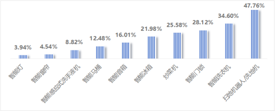 其中,扫地机器人和洗地机的问题占比最高,达到47.76%;其余依次为智能洗衣机、智能门锁、炒菜机、智能冰箱、智能音箱、智能马桶、智能感应式洗手液机、智能窗帘、智能灯。