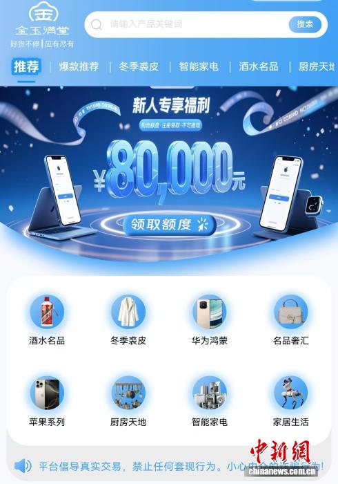 记者注意到,近年来,一些类似金玉满堂的“分期商城”开始出现,这些分期商城号称“先享后付”,用户可以在平台申请购物额度然后支付,可购买商品除手机外,还有无人机、家电、黄金、酒水等,其标价均明显高于市场价格。在下单时,平台与用户之间签署的虽然是买卖合同,但实际上,下单者不仅是消费者,还成为了借款人。