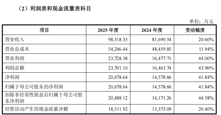 招股意向书显示,受益于在手订单中部分客户试运行完成并验收,泰金新能经审计机构审阅的2025年全年营业收入为23.95亿元,同比增长9.16%;归母净利润为2.04亿元,同比增长4.38%。