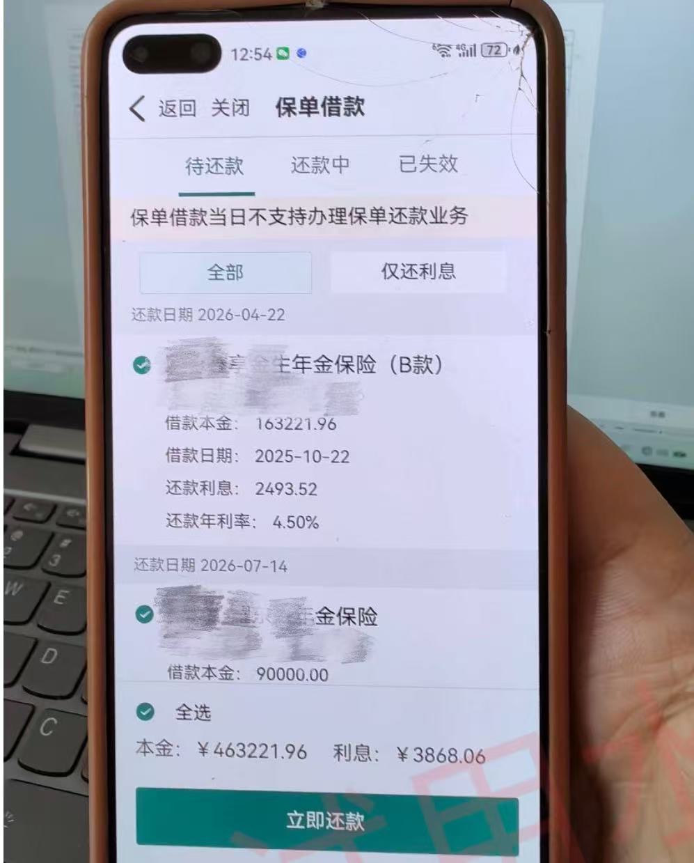 直至2026年2月,代先生介入梳理老人的银行账户和保单信息时才发现,代中华名下已累计产生约46万元保单贷款,且已产生数千元的贷款利息,这笔债务远超退休老人的偿还能力。
