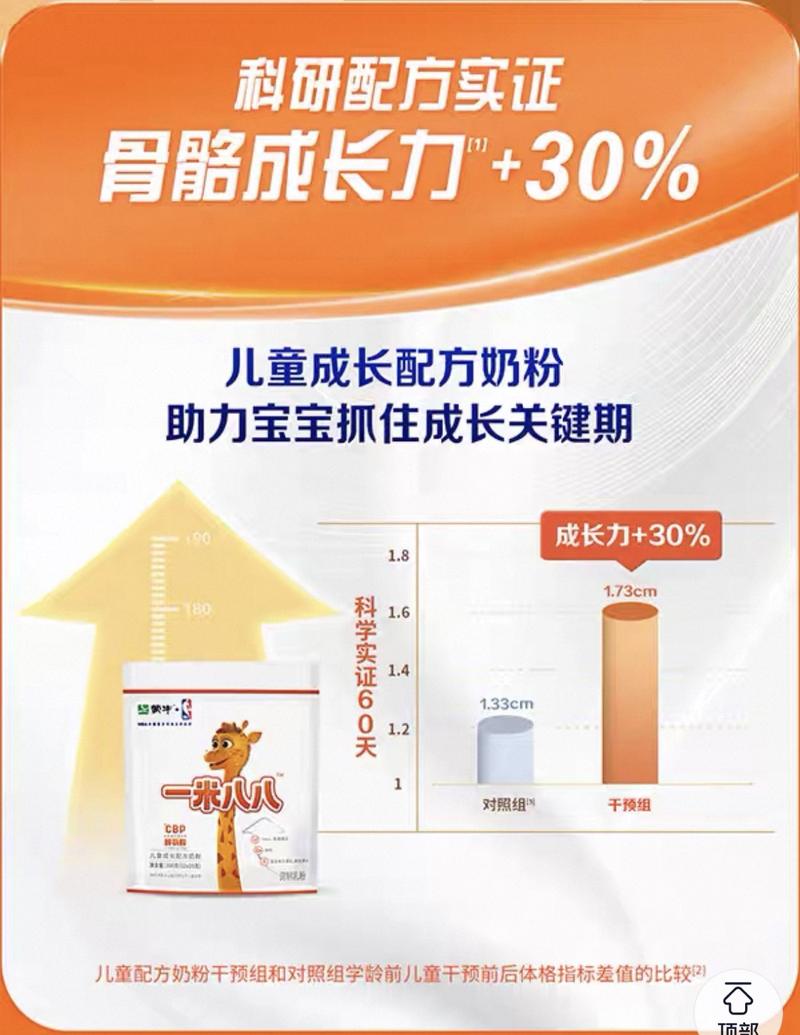 蒙牛一米八八的宣传页面上显示“10000g生牛乳仅能提取4gCBP”,称其能提升成骨细胞活性,抑制骨流失与帮助骨骼生长。合生元大灌篮的直播间里甚至直接将CBP骨蛋白与骨骼“拉长”做了连接。