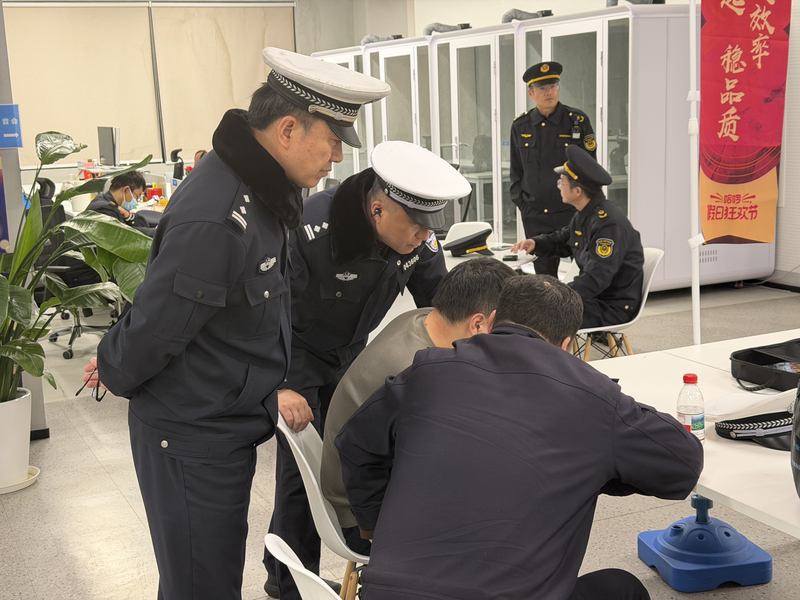 上海市公安局交管总队民警正在对涉事公司进行核查。新京报贝壳财经记者俞金旻摄