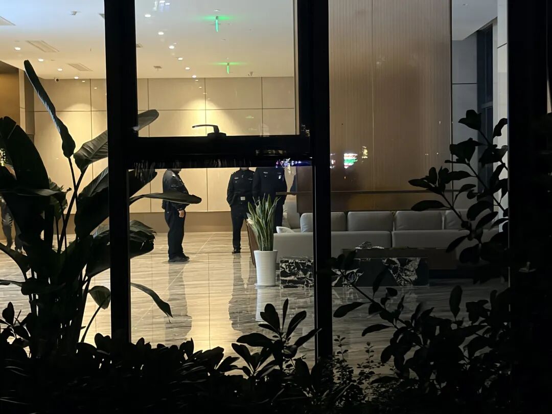 一位在附近工作的人士对记者表示,据他观察,多部门下午就已经查封了这家公司,员工应该已经不在办公了。不过,从外面看去,大楼18层灯火通明,不时有警察等从楼栋的正门进出。
