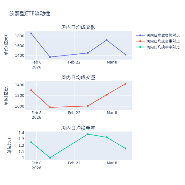 流动性方面,上周股票型ETF市场日均成交额减少17.3%,日均成交量增加16.7%,换手率减少0.18%。