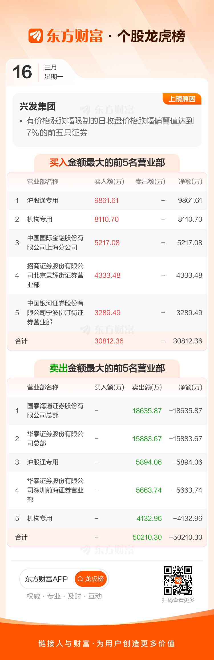交易所2026年3月16日公布的交易公开信息显示,兴发集团因成为有价格涨跌幅限制的日收盘价格跌幅偏离值达到7%的前五只证券上榜。兴发集团当日收报37.31元,涨跌幅-8.51%,偏离值-8.25%,换手率4.33%,成交额20.29亿。