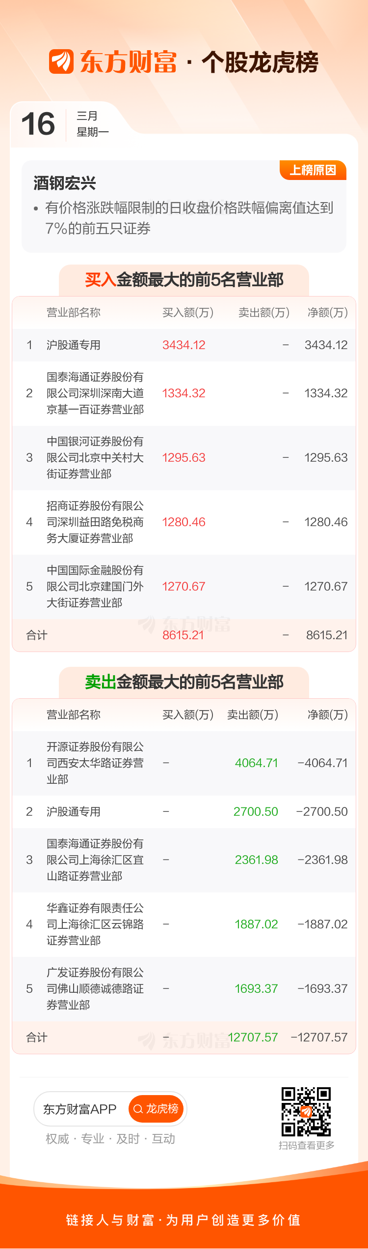 酒钢宏兴(600307)龙虎榜数据(03-16)