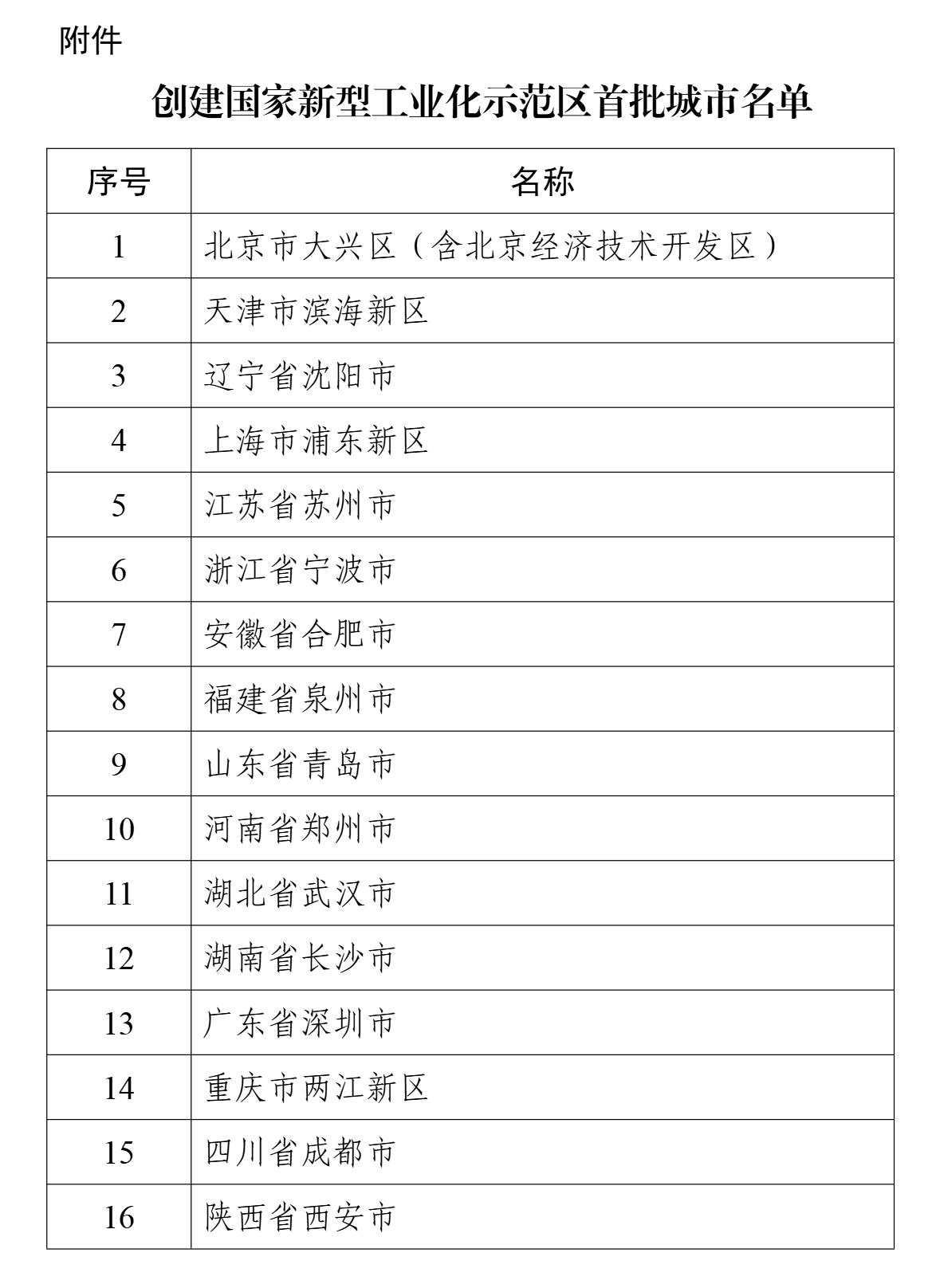 3月16日,工业和信息化部发布通知,贯彻落实党中央、国务院关于加快推进新型工业化的战略部署,按照《评比表彰和创建示范活动管理办法》有关要求,经党和国家功勋荣誉表彰工作委员会办公室批准,工业和信息化部组织开展国家新型工业化示范区创建活动。依据《国家新型工业化示范区创建活动工作方案》,经省级人民政府推荐、资料审核、专家评审等程序,确定首批16个创建国家新型工业化示范区城市(以下简称创建城市),现将名单予以公布。