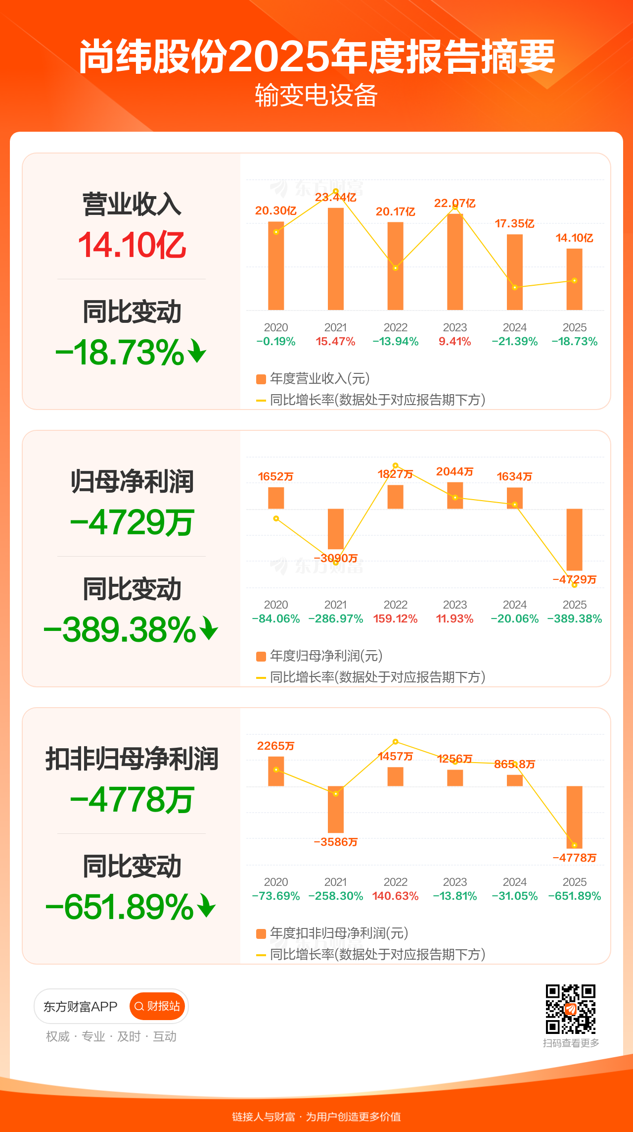 尚纬股份3月17日发布2025年年报显示,公司全年实现营业收入14.10亿元,同比下滑18.73%;归母净利润-4729.32万元;扣非归母净利润-4778.12万元。