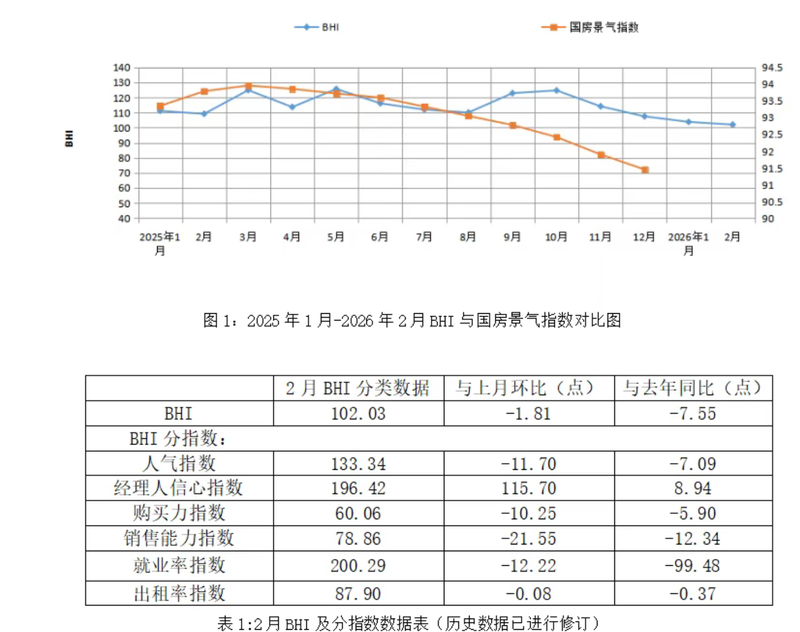 新京报讯(记者张洁)3月16日,由商务部流通业发展司立项、中国建筑材料流通协会编制并发布的信息显示,2月全国建材家居景气指数BHI为102.03,环比下跌1.81点,同比下跌7.55点,全国规模以上建材家居卖场销售额同比下跌。中国建材流通协会分析称,受传统淡季叠加春节假期等因素影响,BHI整体延续微降态势,符合季节性规律。