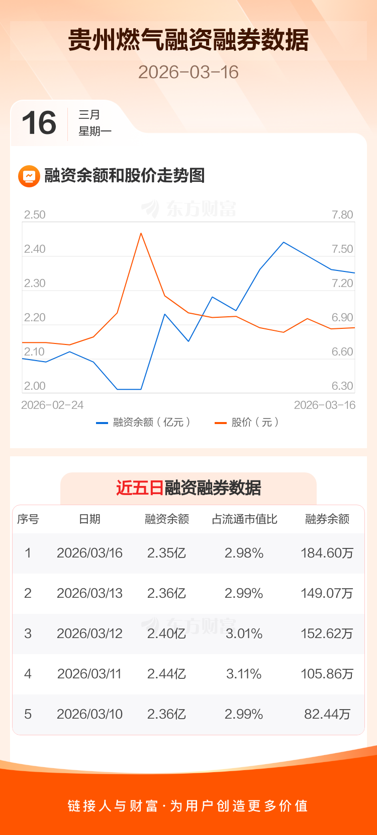 交易所最新数据显示,贵州燃气于2026年3月16日获融资买入1503.98万元,融资偿还1533.79万元,当日融资净偿还29.8万元。目前,该股融资余额2.35亿,占流通市值比例为2.98%。