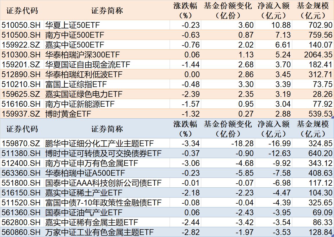 ETF规模速报 | 上证50ETF净流入超10亿元,化工ETF净流出超16亿元
