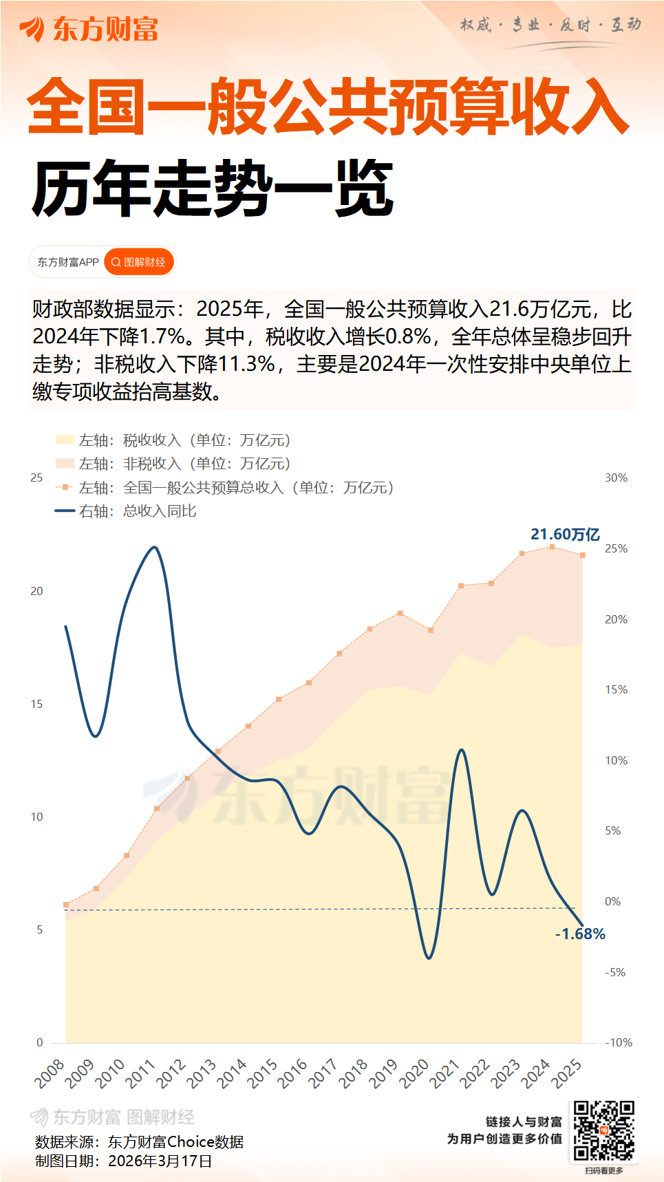 (一)全国一般公共预算收入21.6万亿元,税收收入实现增长。