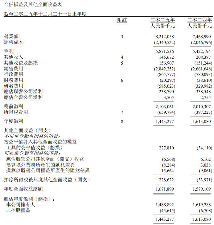 所得税费用方面,报告期内,本集团所得税费用增加66.1%,至人民币659.8百万元,去年同期为人民币397.2百万元,主要因为一次性补缴2022年至2024年已享受地方优惠的所得税人民币223.8百万元的影响。