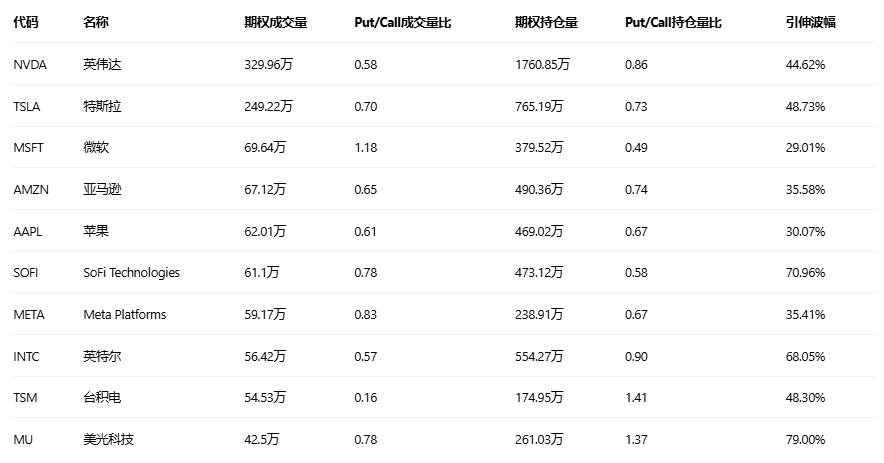 美股期权成交量排行榜前十