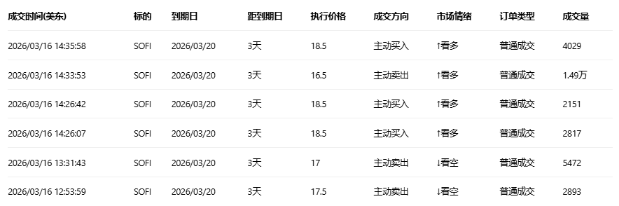 SoFi Technologies收跌0.73%,成交61.1万份期权合约,看跌/看涨成交量比升至0.78。SoFi与万事达卡合作推出SoFiUSD稳定币用于区块链结算服务。