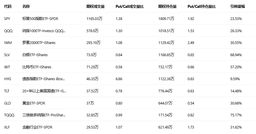 美股ETF期权成交量排行榜前十