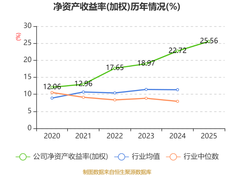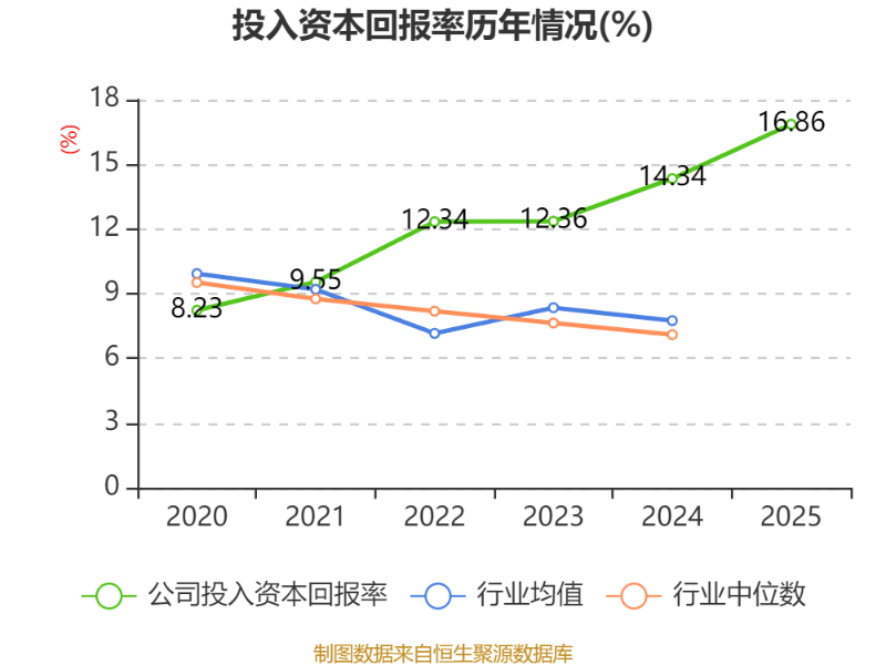 数据显示,2025年公司加权平均净资产收益率为25.56%,较上年同期上升2.84个百分点。公司2025年投入资本回报率为16.86%,较上年同期上升2.52个百分点。