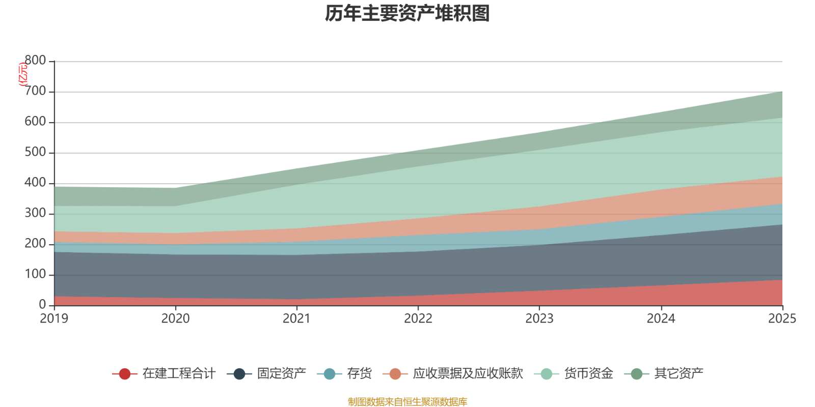 资产重大变化方面,截至2025年末,公司货币资金较上年末增加2.6%,占公司总资产比重下降2.19个百分点;在建工程合计较上年末增加27.45%,占公司总资产比重上升1.55个百分点;应收票据及应收账款较上年末减少0.65%,占公司总资产比重下降1.46个百分点;应收款项融资较上年末增加52.12%,占公司总资产比重上升1.13个百分点。