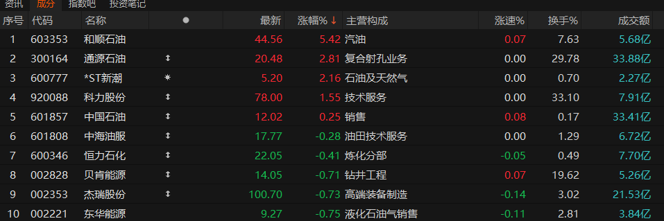 石油天然气板块午后回暖,截至收盘,和顺石油涨超5%,通源石油、科力股份、中国石油午后翻红,当日收红。