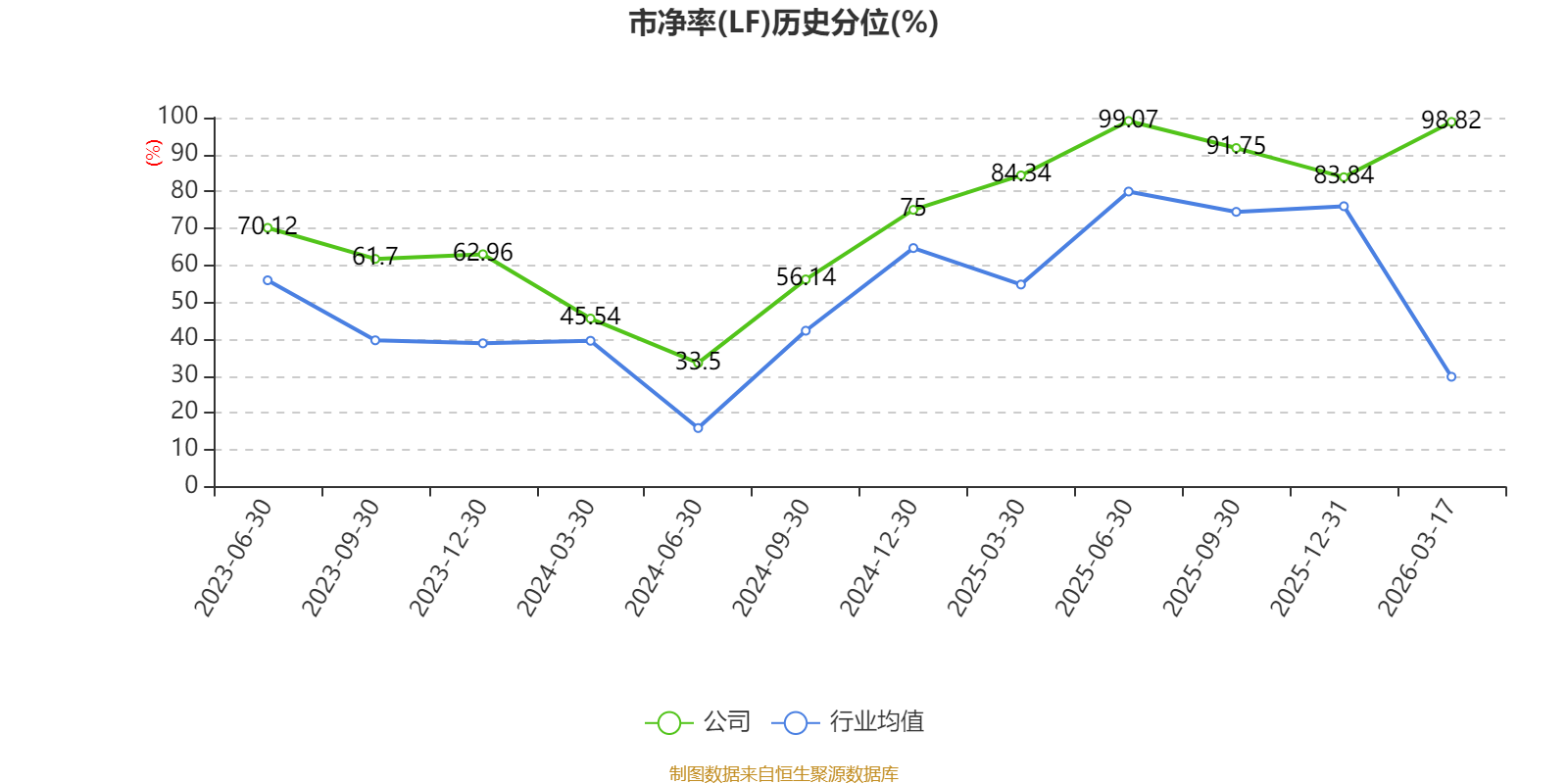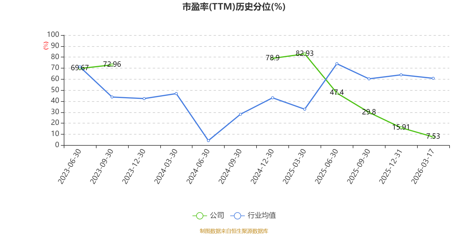 市盈率、市净率为负时,不显示当期分位数,会导致折线图中断。