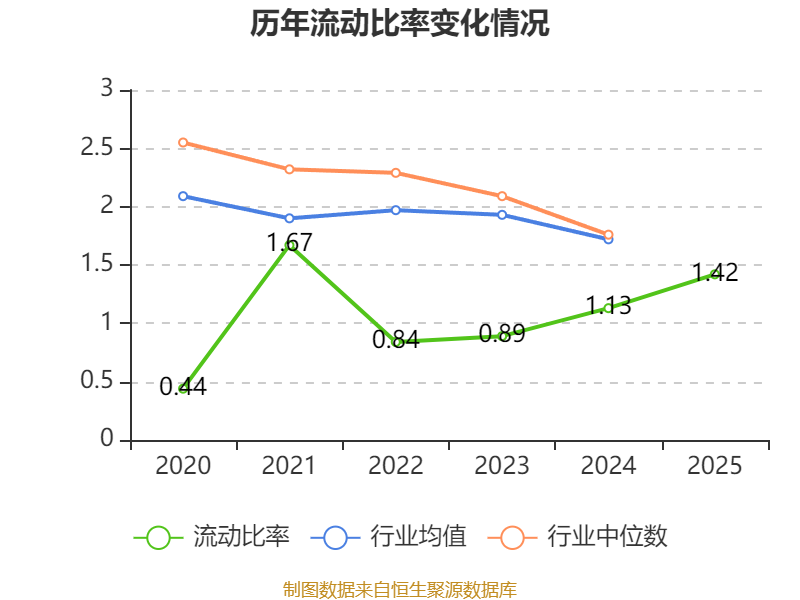 2025年,公司流动比率为1.42,速动比率为1.04。