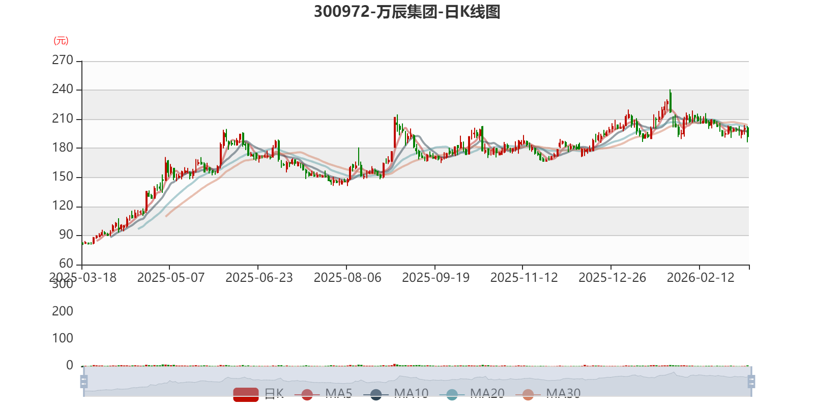 中证智能财讯万辰集团(300972)3月18日披露2025年年度报告。2025年,公司实现营业总收入514.59亿元,同比增长59.17%;归母净利润13.45亿元,同比增长358.09%;扣非净利润12.77亿元,同比增长395.03%;经营活动产生的现金流量净额为36.31亿元,同比增长328.07%;报告期内,万辰集团基本每股收益为7.3028元,加权平均净资产收益率为79.52%。公司2025年度分配预案为:拟向全体股东每10股派现8.5元(含税)。