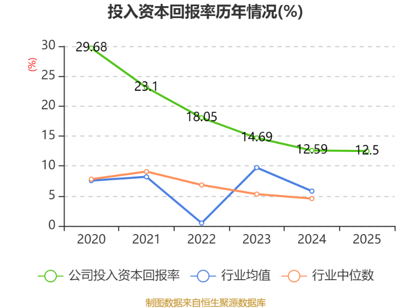 数据显示,2025年公司加权平均净资产收益率为12.82%,较上年同期下降0.18个百分点。公司2025年投入资本回报率为12.5%,较上年同期下降0.09个百分点。