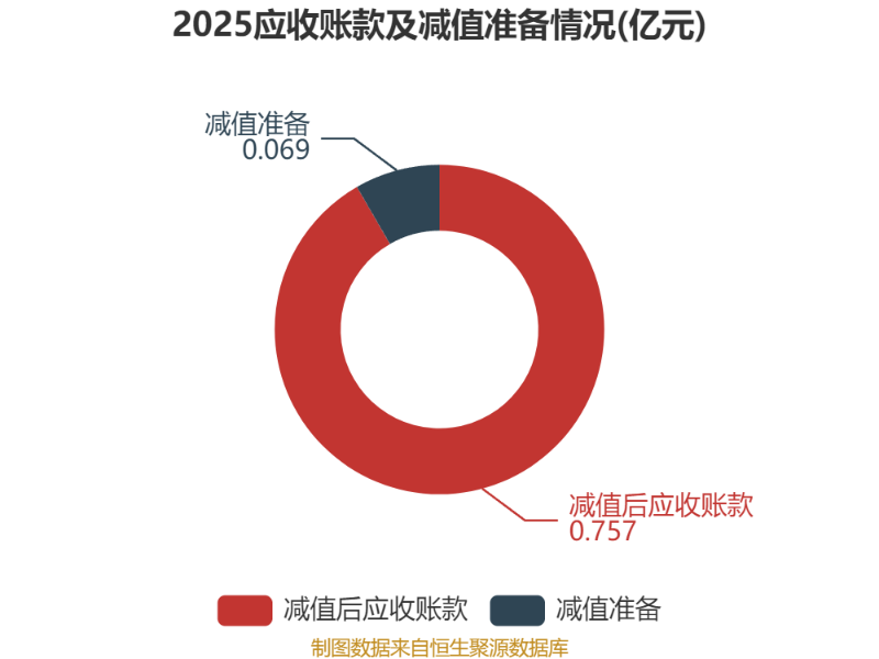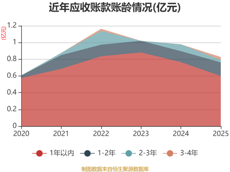 从应收账款账龄结构来看,截至2025年末,公司账龄在1年以内的应收账款余额为0.6亿元,较上年末下降1651.08万元,占应收账款总额比例为72.55%,较上年末下降5.64个百分点。