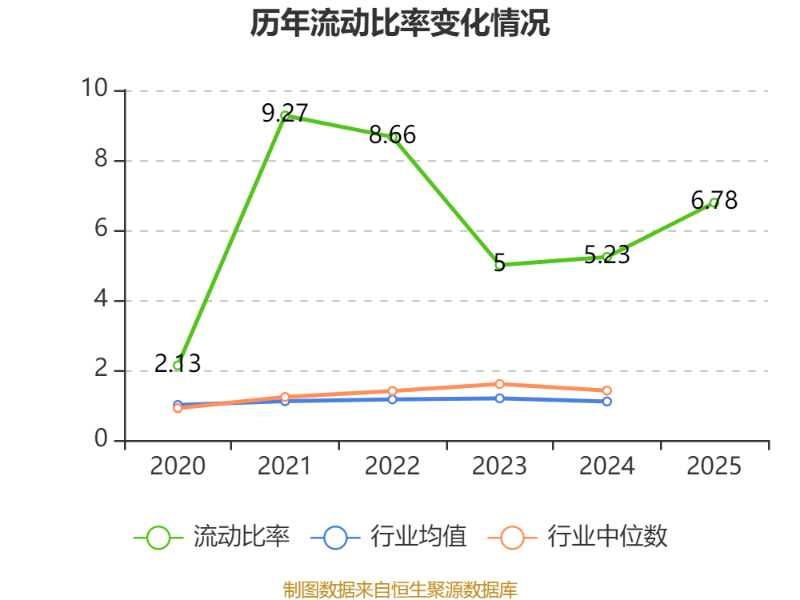2025年,公司流动比率为6.78,速动比率为6.7。
