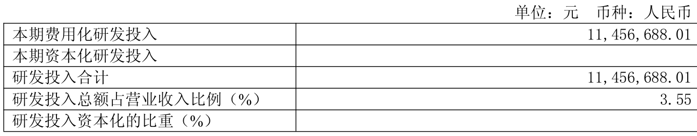 2025年全年,公司研发投入金额为1145.67万元,同比下降11.36%;研发投入占营业收入比例为3.55%,相比上年同期下降0.05个百分点。此外,公司全年研发投入资本化率为0%。