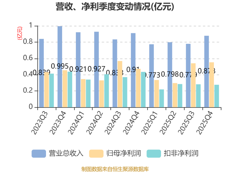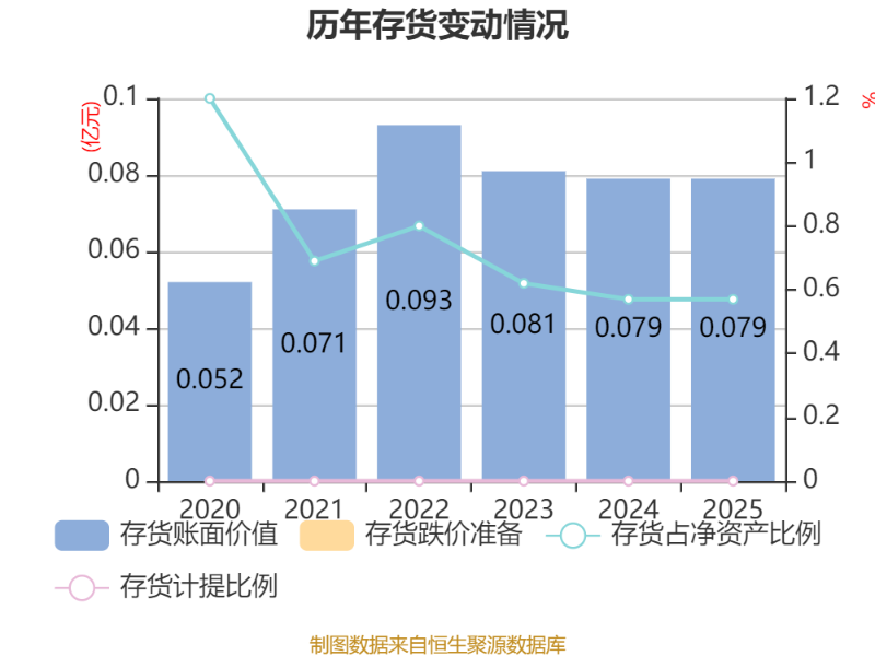 从存货变动来看,截至2025年末,公司存货账面价值为788.03万元,占净资产的0.57%,较上年末减少7602.71元。公司本期没有计提存货跌价准备。