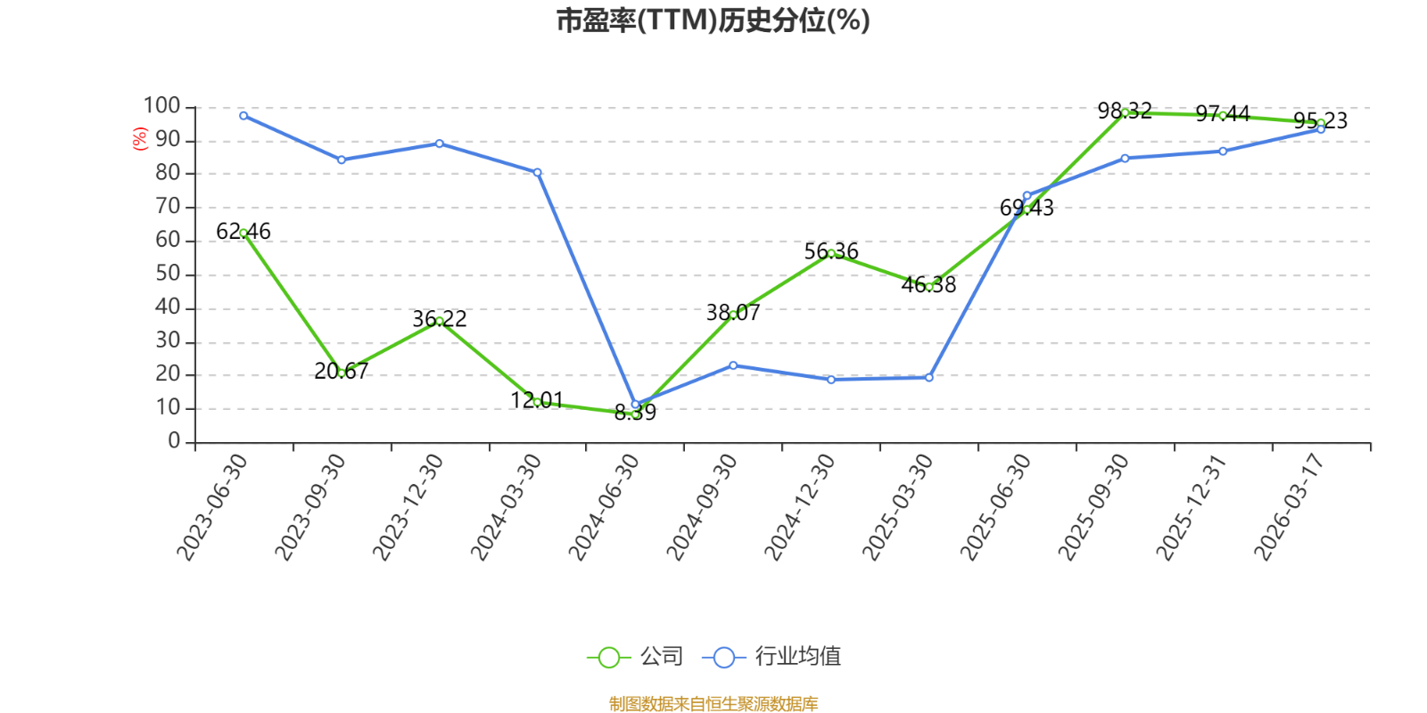市盈率、市净率为负时,不显示当期分位数,会导致折线图中断。