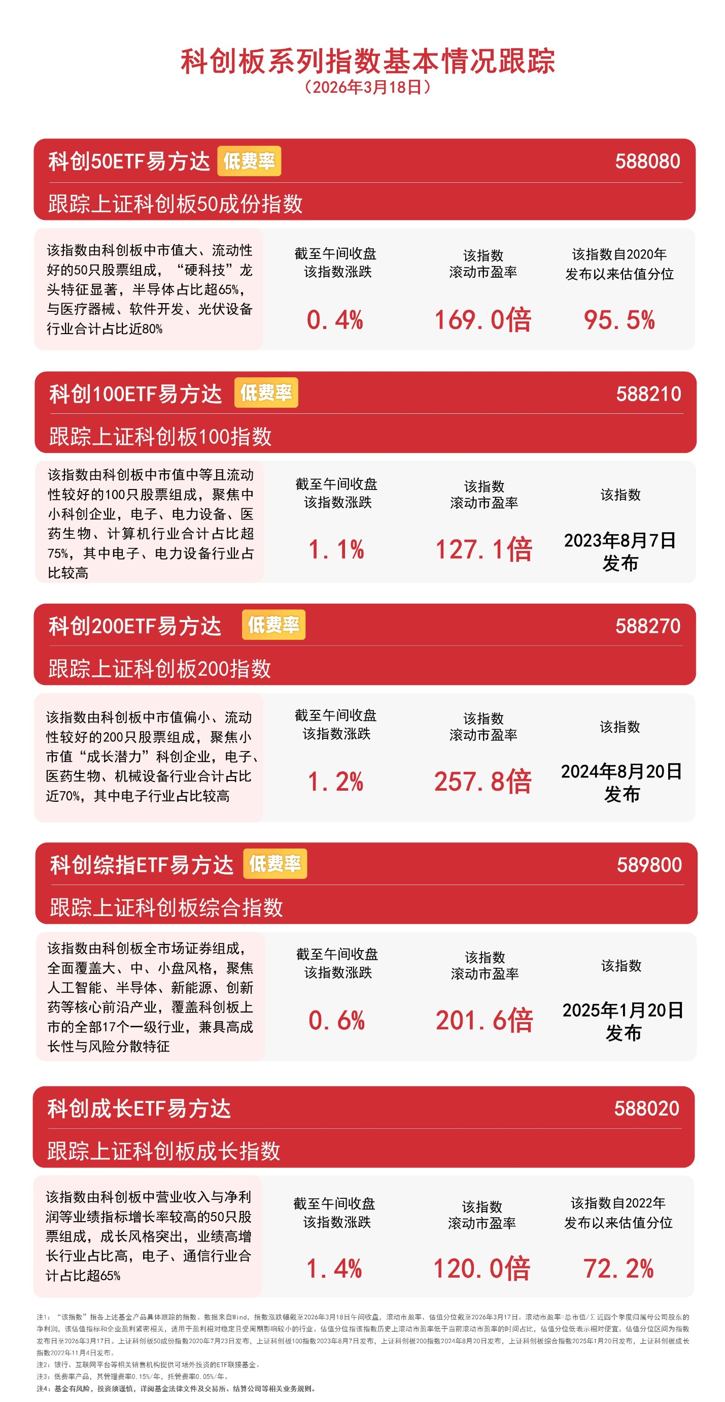 截至午间收盘,科创成长指数上涨1.4%,科创200指数上涨1.2%,科创100指数上涨1.1%,科创综指上涨0.6%,科创50指数上涨0.4%。Wind数据显示,截至昨日,科创50ETF易方达(588080,联接基金A/C/Y:011608/011609/022895)连续4个交易日“吸金”,合计3.5亿元。