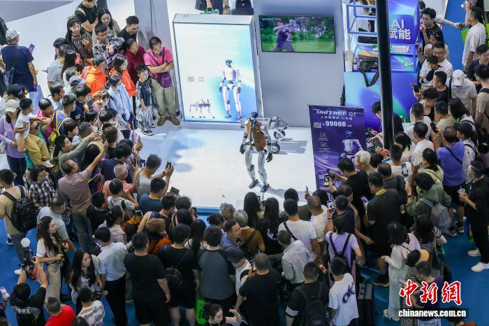 2025年4月17日,第五届中国国际消费品博览会上,参观者感受全球消费精品与前沿科技的魅力。中新网记者骆云飞摄