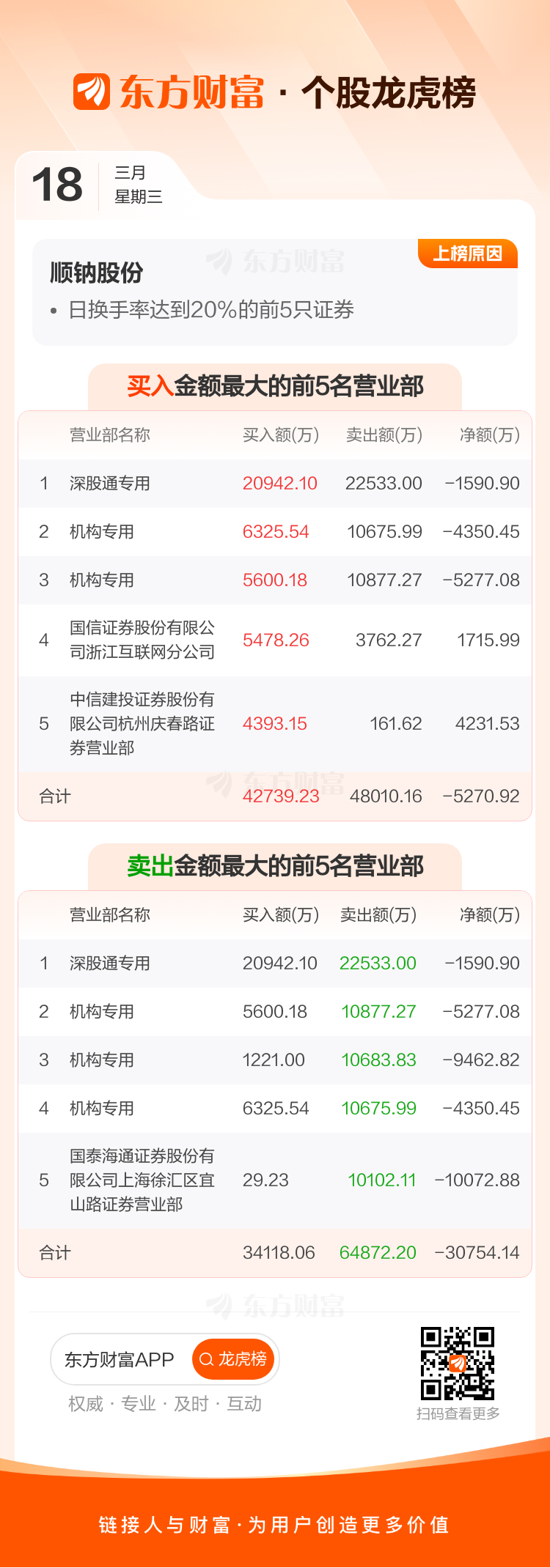 交易所2026年3月18日公布的交易公开信息显示,顺钠股份因成为日换手率达到20%的前5只证券上榜。顺钠股份当日收报19.75元,涨跌幅-3.80%,偏离值36.01%,换手率36.01%,成交额50.83亿。