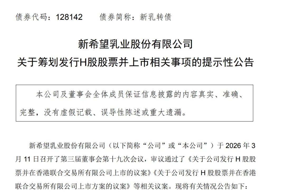 近期,新希望旗下乳品上市公司新乳业(002946)发布公告,为满足业务发展需要、深入推进国际化战略、打造国际化资本运作平台,进一步提升资本实力,经董事会审议通过,拟发行境外上市外资股(H股)股票并在港交所主板挂牌上市。