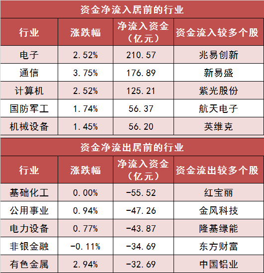 3.电子等行业实现主力资金净流入