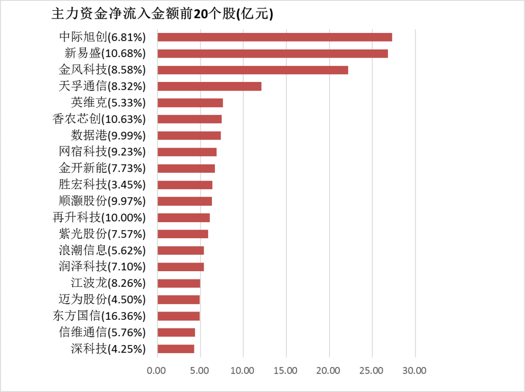 1. 两市主力资金净流入近20亿元