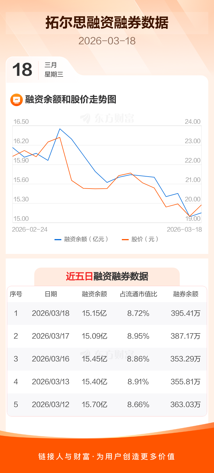 交易所最新数据显示,拓尔思于2026年3月18日获融资买入3696.31万元,融资偿还3117.13万元,当日融资净买入579.17万元。目前,该股融资余额15.15亿,占流通市值比例为8.72%。