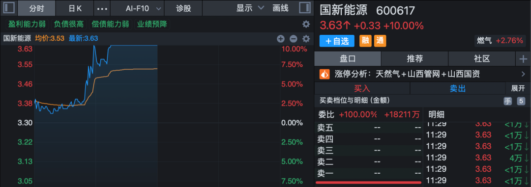 燃气、油服工程、天然气、石油化工等板块也纷纷逆市飘红,国新能源、凯添燃气、天壕能源等涨停或涨超10%。