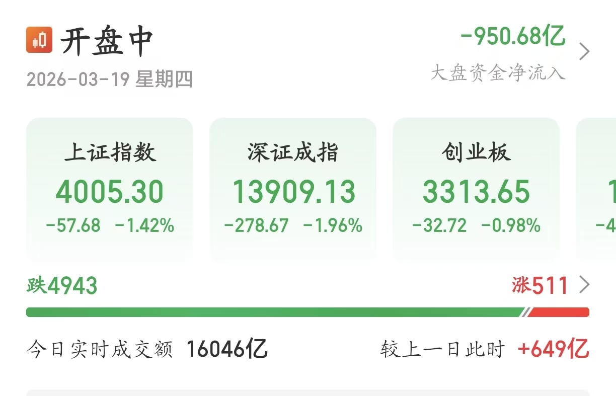 截至发稿,上证指数下跌1.42%,报4005.30点,逼近年内新低,触及4000点关口及。