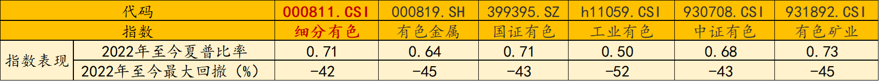 3、收益率表现更优:2022年至今,有色ETF汇添富(159652)标的指数夏普比率同类领先,且最大回撤同类更低,投资体验更好。