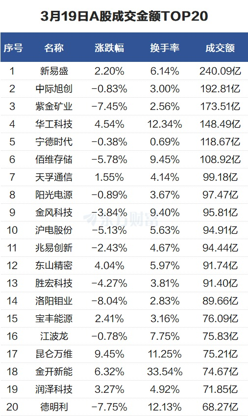 沪深两市成交额2.11万亿元,较上一交易日放量649亿元。个股方面,新易盛当日成交240.09亿元。中际旭创当日成交192.81亿元。